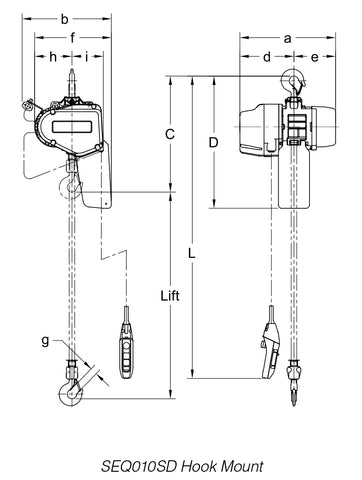 Electric Hoist by Harrington Hoist is a dual speed VFD, 1-phase electric chain hoist with re-connectable 115/230V power. The SEQ hoist also includes a no-load high speed function that automatically increases hoist speed up to 130 percent when the load is less than 30 percent of working load limit. Mount the SEQ hoist to a push trolley to transport any load. The SEQ hoist is a true REVOLUTION in SINGLE PHASE lifting!