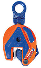Crosby universal plate lifting clamps are used for lifting, turning, moving or vertical transfer of sheet, plates, or fabrications from horizontal to vertical and down to horizontal (180 Deg.) as needed. The hinged hoisting eye allows for the clamp to place and lift the load from any direction, or with a multiple leg sling without side-loading the clamp.