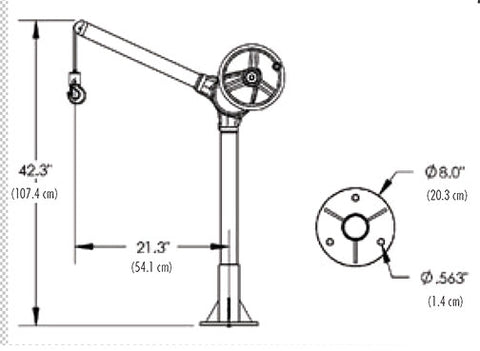 Ergonomic Lifting Device, the Sky Hook Model 8527, is an industrial lifting device that allows one person to lift up to 500 lbs. Ideal for mounting to bench, service truck\/van, or heavy cart. Handles a p variety of general lifting applications.